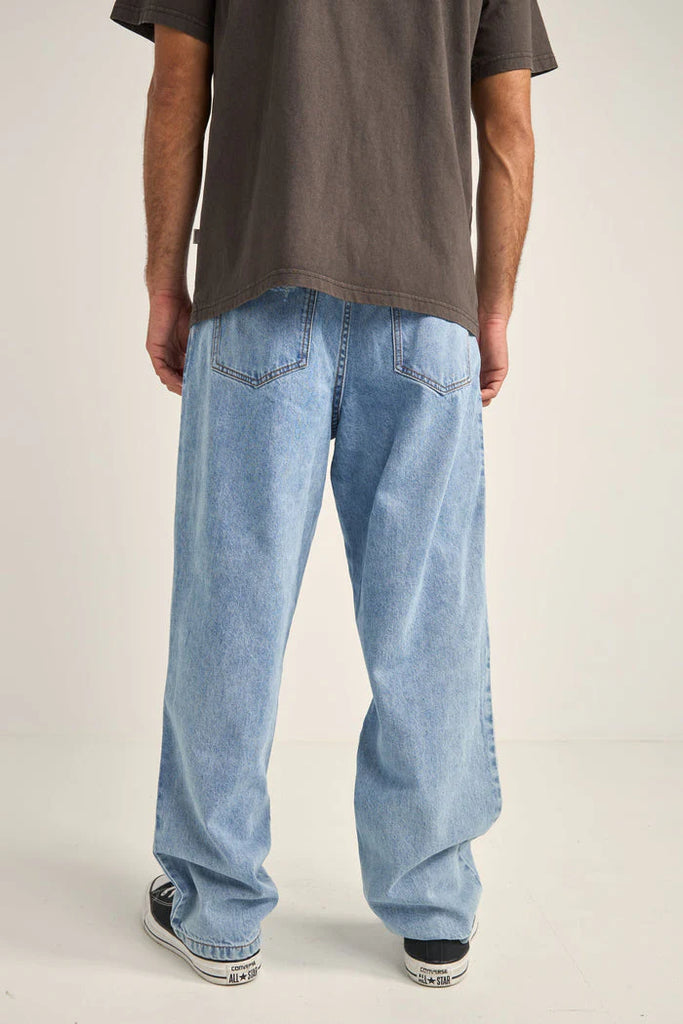 Give off a laid back, coastal vibe with the Subtle Distress Jean by Rhythm. They feature a 41 inch outseam and are offered in a light blue color way with a light wash.