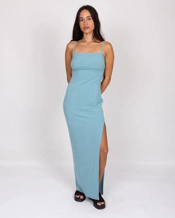 This knit maxi dress features adjustable straps, a slide slit, and a fitted silhouette. All together, it makes for the perfect dress for casual and/or fancy occasions.