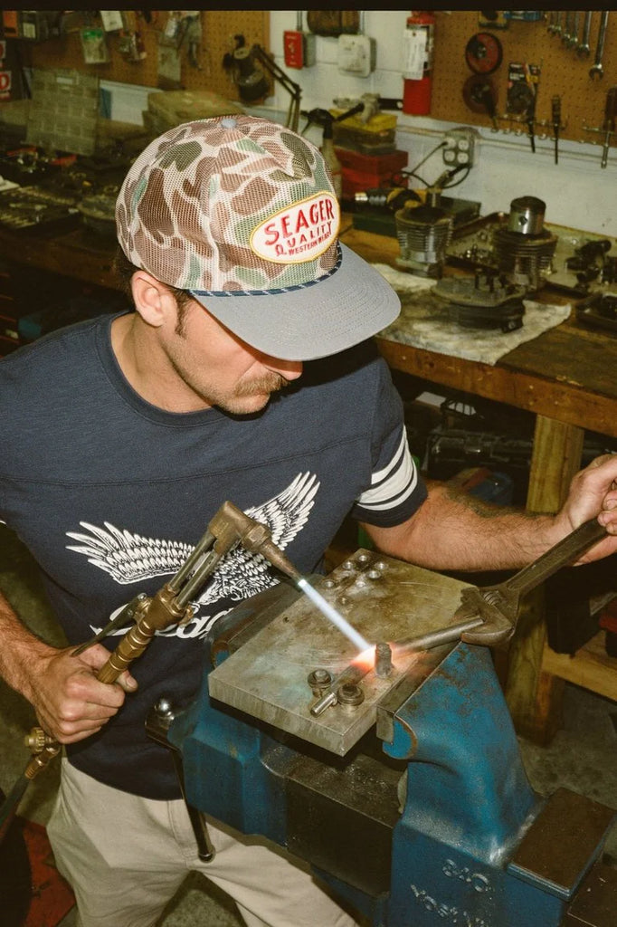 The 'Old Town' hat features a custom embroidered patch and a vintage bill stripe. Lightweight and breathable, it’s the perfect companion for whatever adventure lies ahead.